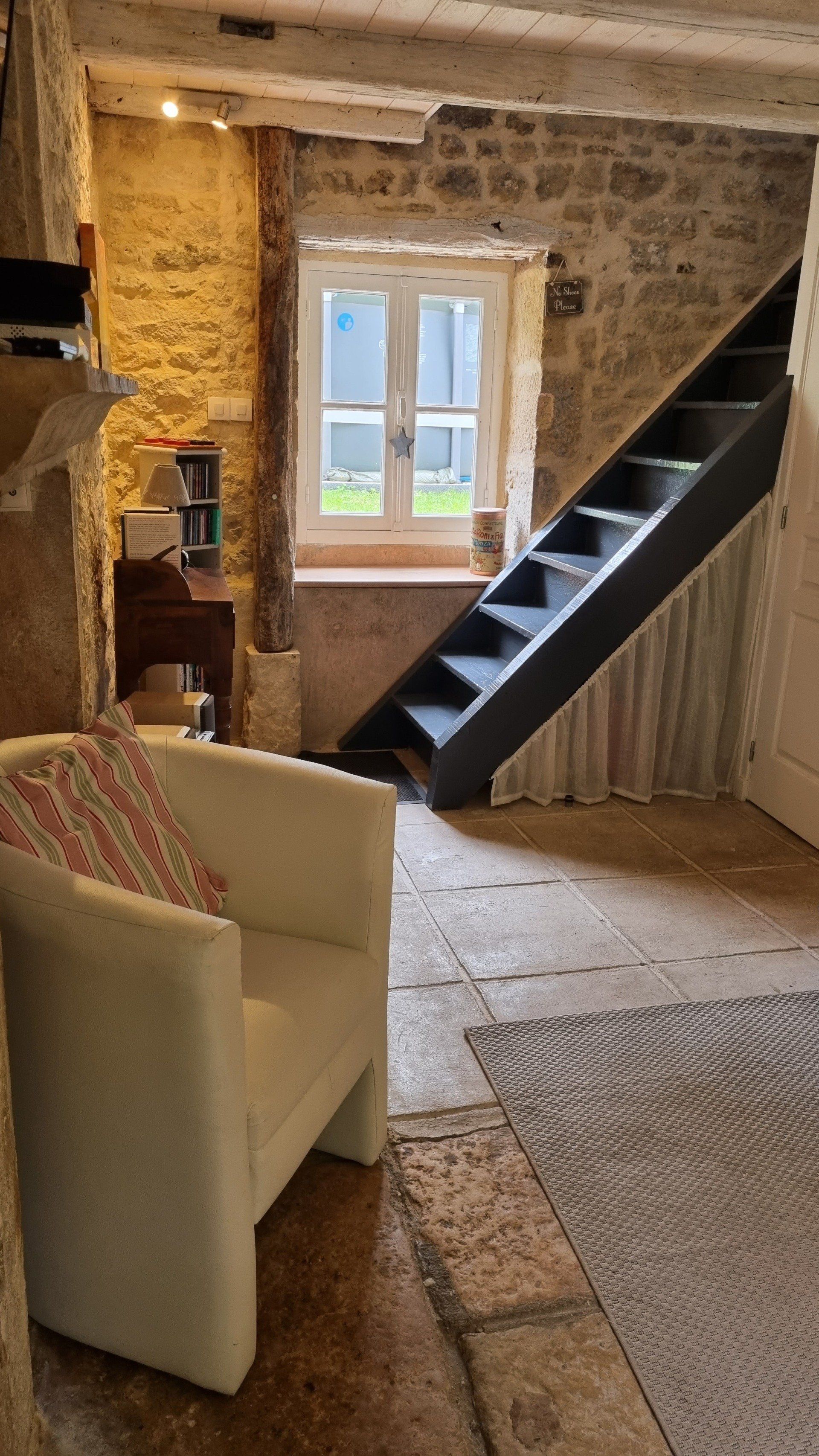 A fairly spacious but cosy room, there is a sofa, a TV (French), a DVD player, and Wi-Fi which reaches round the house. There is also a range of DVDs for young and old, a selection of books, and various board games.